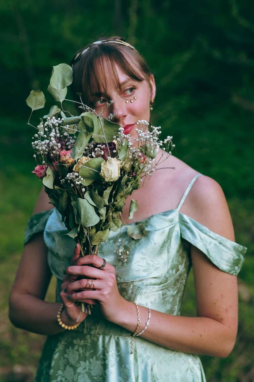 Green Print Spaghetti Straps A-Line Empire-Waist Long Prom Dress – Modsele