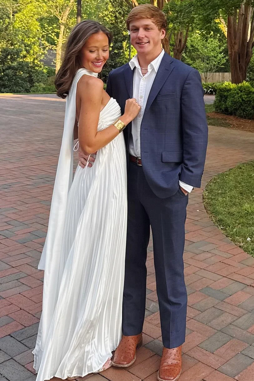 Elegant A-Line Strapless Pleated Sweetheart Empire-Waist Formal Prom Dress